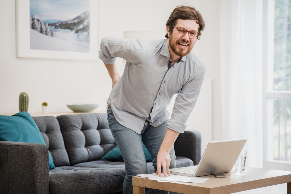 If you’re going to be sitting down at your desk, invest in an adjustable chair and make sure it gives you proper support for your lower back. It’s important to think about your posture if you’re sitting down, so if you tune in and find yourself slumping and slouching, make sure you adjust from time to time.